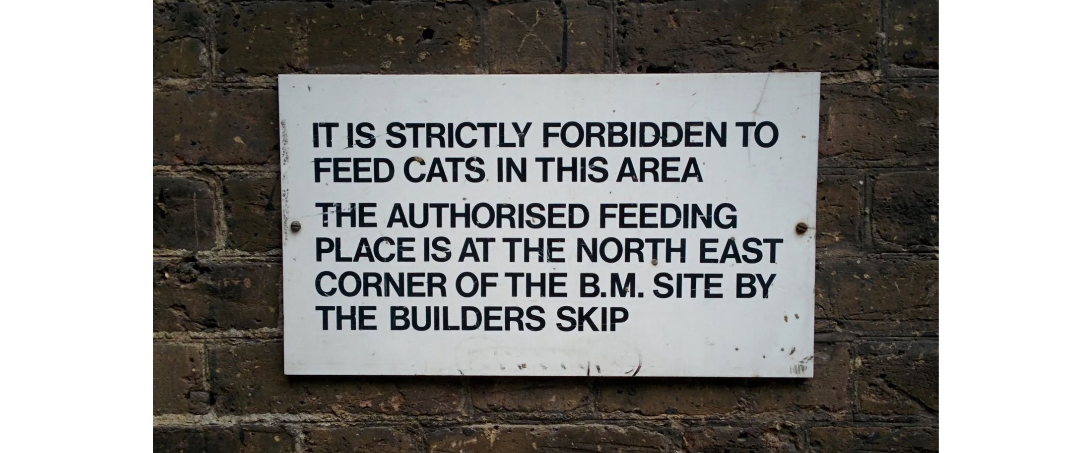 If I saw this sign at my place of work, I would be compelled to get to the bottom of it, so I’m so glad someone at the British Museum did so—and found out that between the 1970s and 90s, the museum kept between 4-7 cats, the remains of a once-feral population, and the sign is one of the few things that remains.