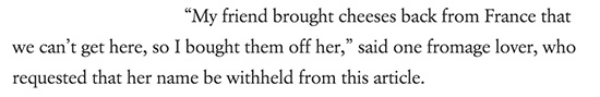 This Vogue article about black market cheese is everything I ever wanted, and I want to be clear I would never redact my name from a quote like this (especially in Vogue!)
