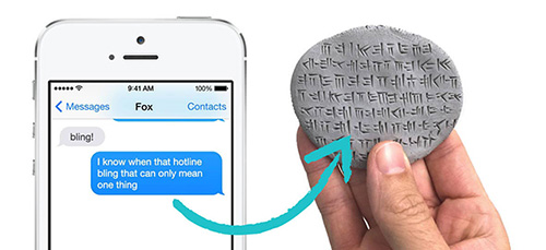 In other “this was made for Emily” news, Dumb Cuneiform is a service that will take your 140-character-or-less text, tweet, or what have you, translate it into cuneiform, put it on some stone, and send it back to you.