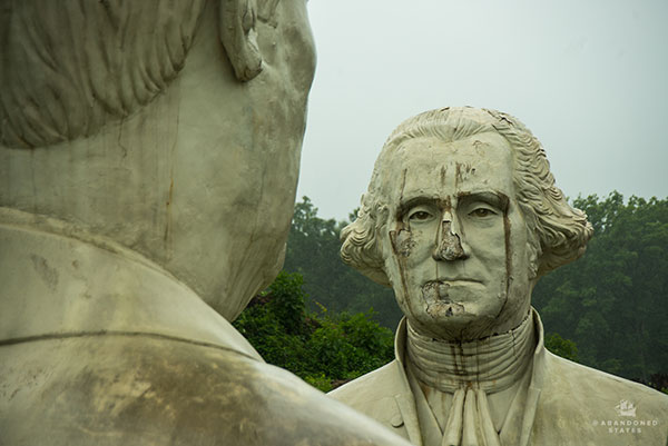 The busts are the remains of Virginia Presidents Park, first opened in 2004 and shuttered in 2010, when the busts were moved to private land. (If you’re wondering if I’m furious that I didn’t visit this in person when I lived in Williamsburg, know that it’s eating me up inside.) Moving these 20 foot tall busts caused quite a few issues, which resulted in their slightly battered state today:
