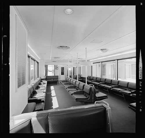 While the aircraft, some one or two miles off on the tarmac, were prepared, flyers relaxed in these swank waiting areas, enjoying cocktails from nearby stands….Fifteen minutes before departure, the mobile lounge closed its doors, pulled away from the terminal, and rolled off like a very large dune buggy. Once in reach of the plane, its far end mated with the plane door, and passengers processed onto their flight. The empty lounge headed back to the terminal, to become a waiting room again.