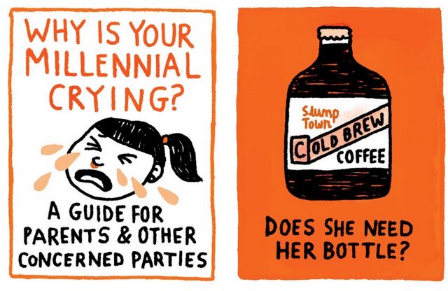 Turns out maybe we're not Millennials after all! To add to the Generation Catalano pile, Anna Garvey suggests the Oregon Trail Generation, hinging on the idea that "we were the first group of kids who grew up with household computers, but still novel enough to elicit confusion and wonder," which seems on point to me. If you still want to stick with Millennial, Gemma Correll's Why Is Your Millennial Crying is actually perfect, and these two panels don't do it justice.