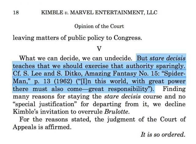 What this Supreme Court season has taught us (besides that we all need Notorious RBG shirts) is that the Running of the Interns is a real thing. Also, it turns out Justice Kagan is a huge nerd, because she filled her brief (relating to a Marvel suit) with quotes from Spider-Man