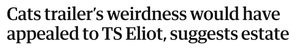 Oh, the CATS trailer dropped, and it is truly A Wild Ride (perhaps even more wild than my inaugural viewing of CATS at age 34, where at intermission I leaned over and asked "I'm sorry, what the hell is a Jellicle Cat?"), but fortunately it has left us with great headlines: